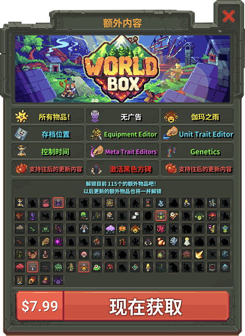 成为一名创世神 在你自己的像素世界中创造生命,建设不同种族的文明。创建出一个你梦想中的世界!